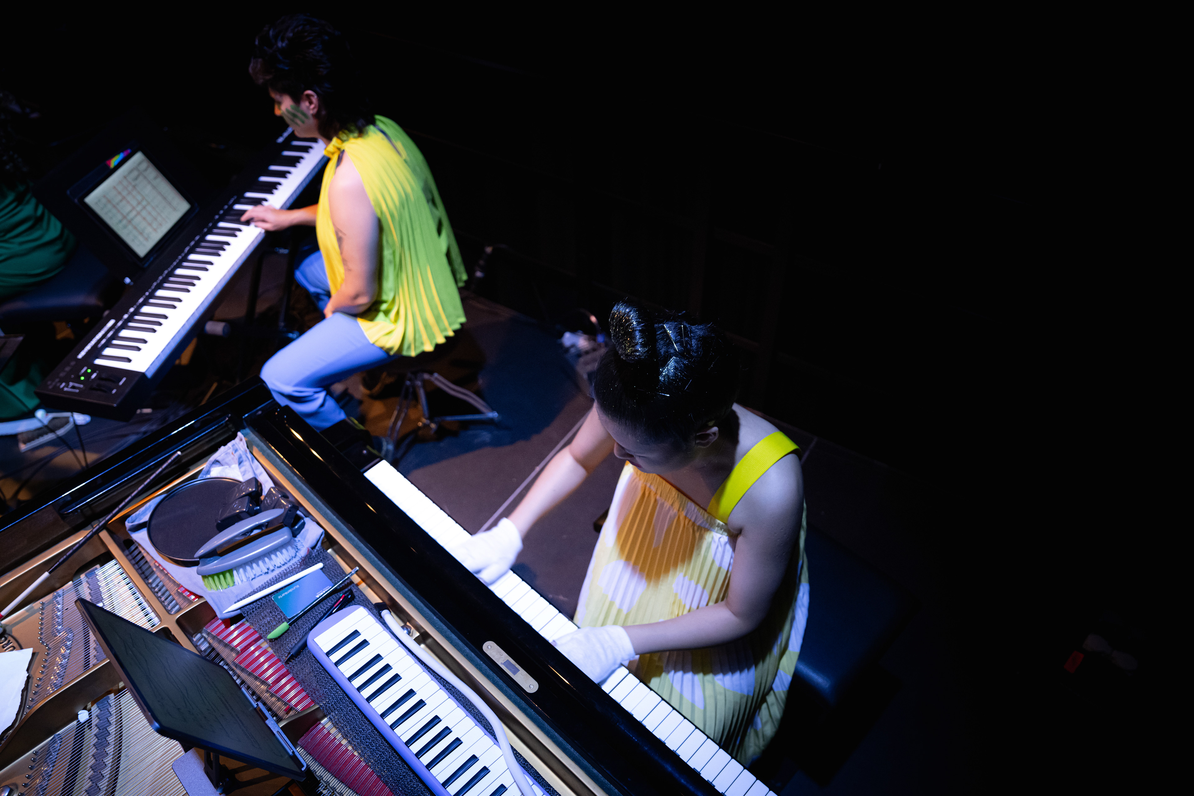 Flöte: Rebecca Blau | Klarinette: Carlos Cordeiro | Percussion: Michael Murphy | Gitarre: Thilo Ruck | Klavier: Yeji Jung | Harfe: Alice Belugou | Violine/Viola: Katharina Schmauder | Violoncello: James Morley | Kontrabass: Rebecca Lawrence